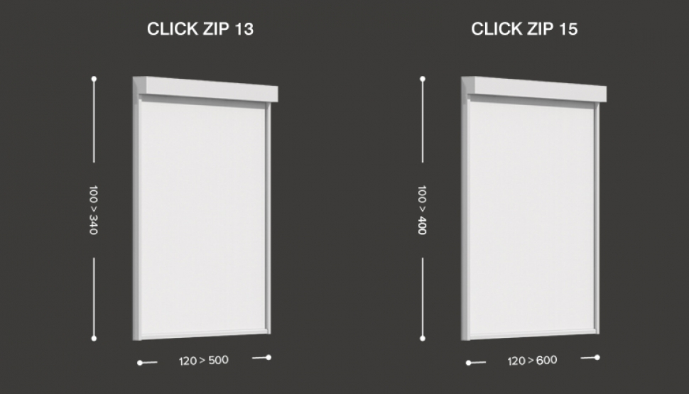 Kolekcija kasetnih rolo senčil s stranskimi Alu. vodili - z ZIP vpetjem tkanine in patentiranim magnetnim napenjalnim sistemom.