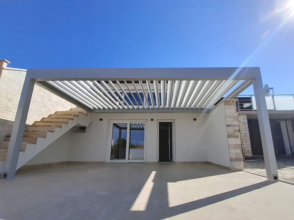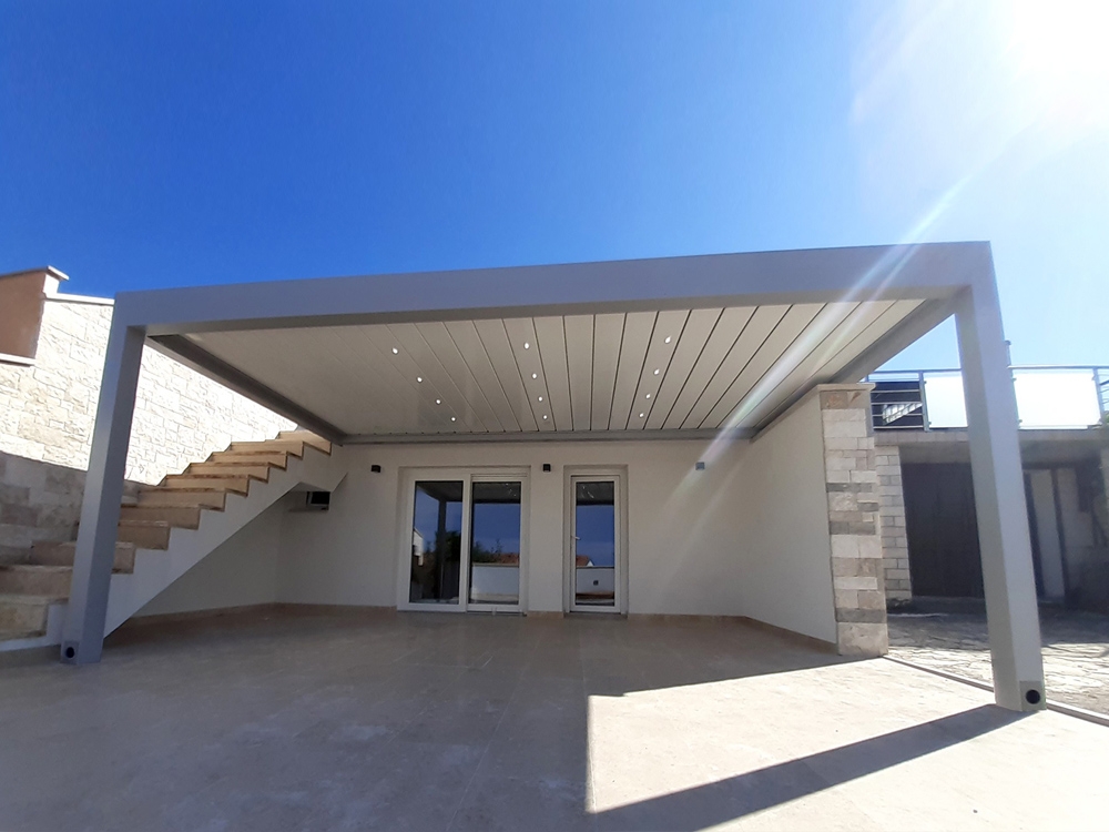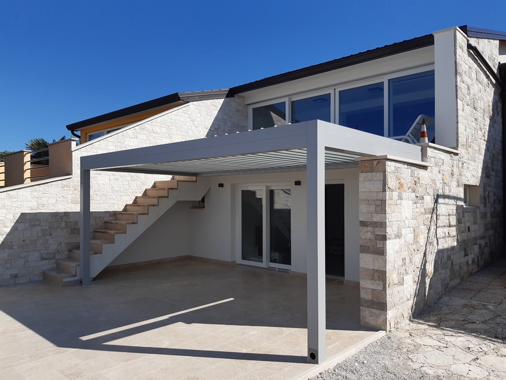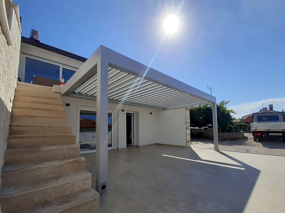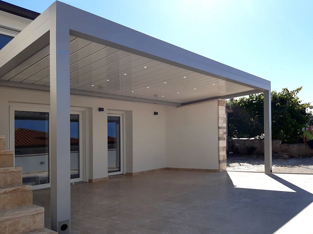 Bioklimatska pergola JOY na terasi počitniške hiše v Savudriji.