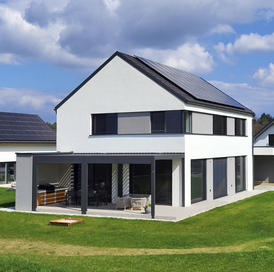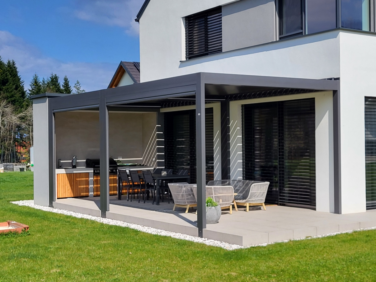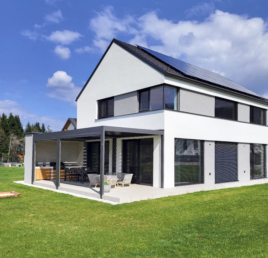 Bioklimatske pergole BASIC-XL na terasi hiše v okolici Celja.