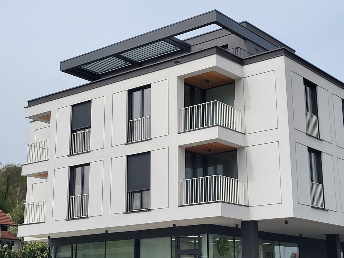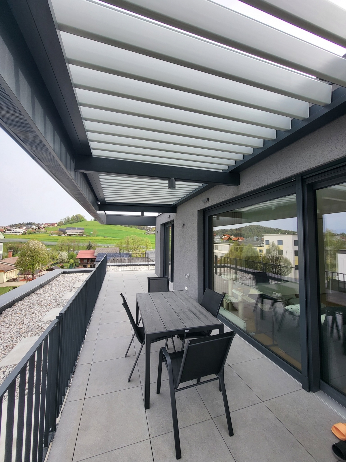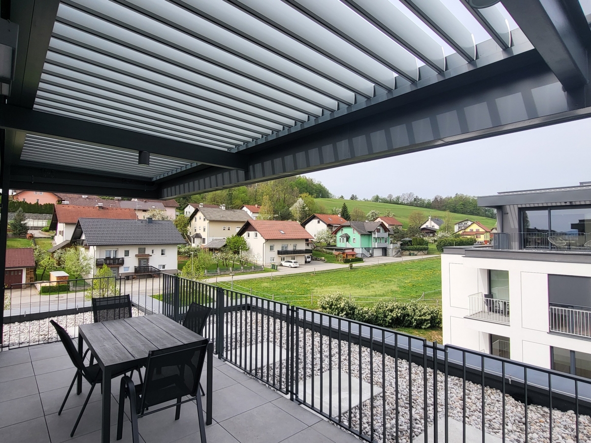 Bioklimatske pergole BASIC-XL vgrajene v obstoječo konstrukcijo; https://ralux.si/izdelek/bioklimatska-pergola-basic